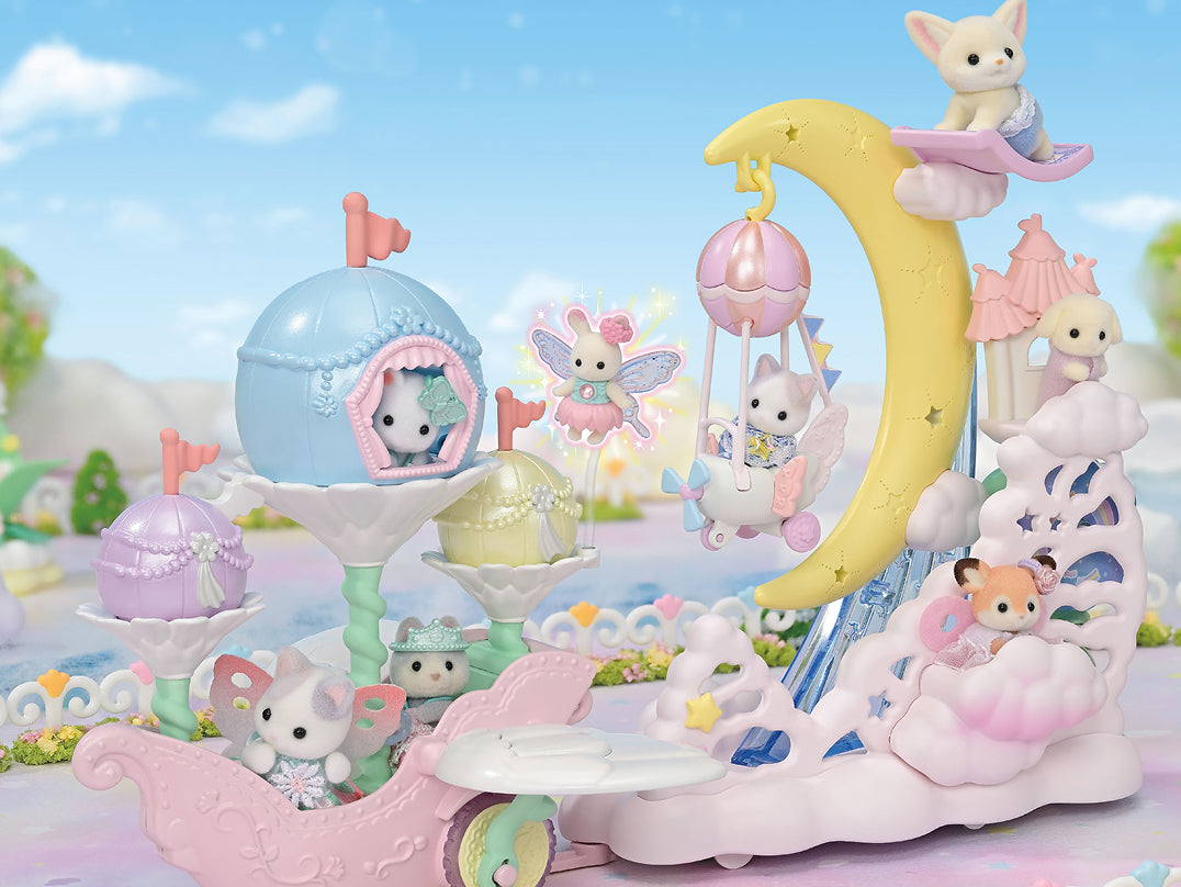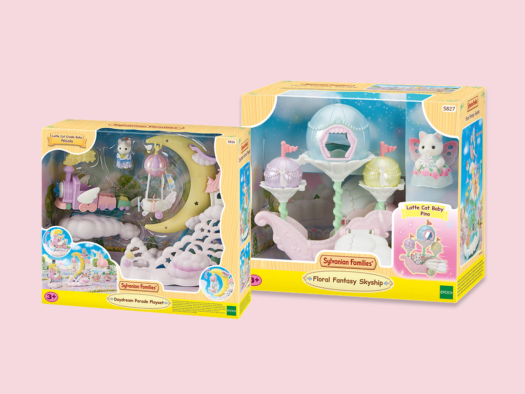 Bringing together the charm of the Daydream Parade Playset and the wonder of the Floral Fantasy Skyship, this bundle creates the ultimate Sylvanian baby experience. Perfect as a centrepiece for your Baby Amusement Park, it’s filled with movement, imagination, and beautifully dressed exclusive characters ready for magical moments.